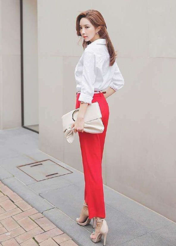 红与白的职业装搭配,多了几分优雅,天使般的气质